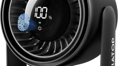 SwitchBot Smart Desk Fan for Bedroom, 22dB Ultra Quiet, 90° Oscillation, Battery Operated, 9 Speeds, 9H Timer, Alexa/Google/Siri Compatible (Hub Required), Portable Air Circulator for Indoor & Outdoor