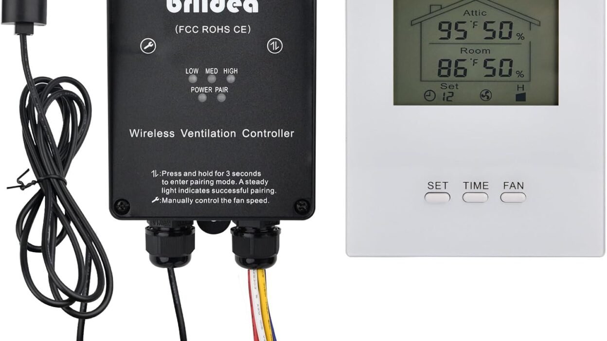WIRELESS CONTROL: This intelligent wireless ventilation control system (compatible with single-line/double-line/triple-line exhaust fans) will provide you with an unprecedented comfort experience. Achieve anytime, anywhere control of exhaust fans at home, along with monitoring the temperature and humidity in the attic and indoors. Relieving you from the need to climb up and down due to issues like attic humidity and high temperatures
